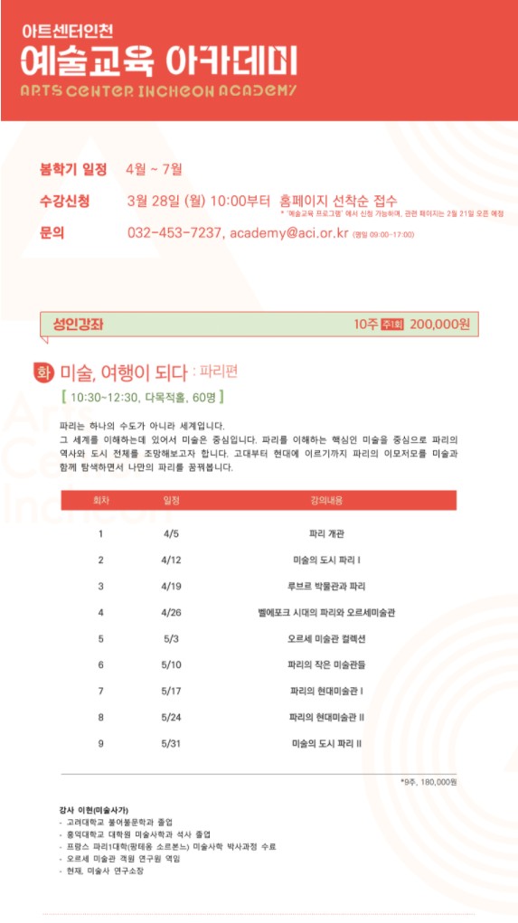 - 환불 방법 : 개강 전, 홈페이지 '예술교육 신청이력'게시판에서 직접 신청