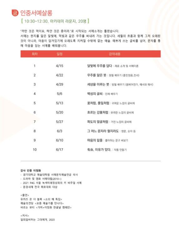 - 10% : (성인 정규강좌) 직전학기 수강생 할인