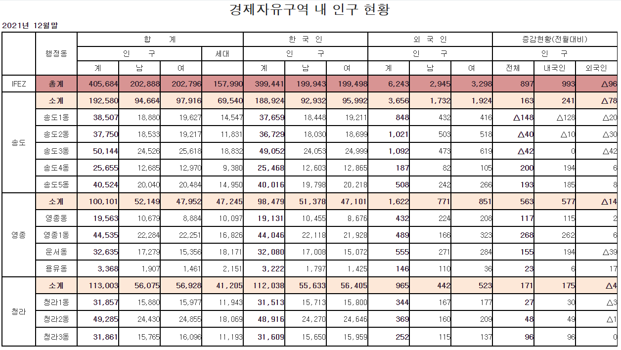 경제자유구역 인구현황